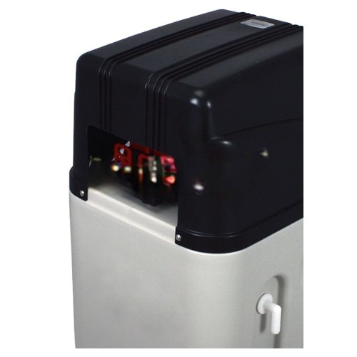 Addolcitore Acqua Cab120 da 25 lt. Resina Cabinato con Valvola Automatica Volume-Tempo La valvola volumetrica può essere programmata con quatto tipi di rigenerazione: rigenerazione mista tempo/volume, cronometrica a tempo, volumetrica immediata, volumetrica ritardata. Cronometrica a tempo – trascorsi il numero di giorni programmati, Volumetrica immediata – al passaggio di una determinata quantità d’acqua, volumetrica ritardata – dal volume d’acqua e l’ora programmata, volumetrica mista tempo/volume – simile alla rigenerazione ritardata, ma permette di programmare una rigenerazione di sicurezza trascorsi il numero di giorni programmati. Le operazioni necessarie per garantire che il sistema funzioni correttamente sono solo quelle di controllare che sia collegato alla rete elettrica e che ci sia una quantità sufficiente di sale. Gli unici requisiti richiesti per l’installazione sono il collegamento all’energia elettrica e tre tubi (entrata, uscita, scarico). Bypass e valvola miscelatore per regolare la durezza in uscita inclusi nel sistema. Prodotto certificato CE, NSF, D.M. 25, D.M. 174.